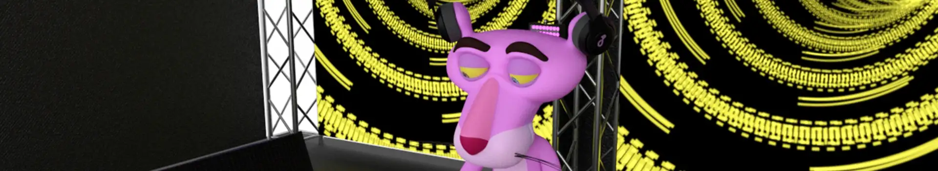 Animation vom allseits beliebten Pink Panther, der während dem Musik hören von seinem großen