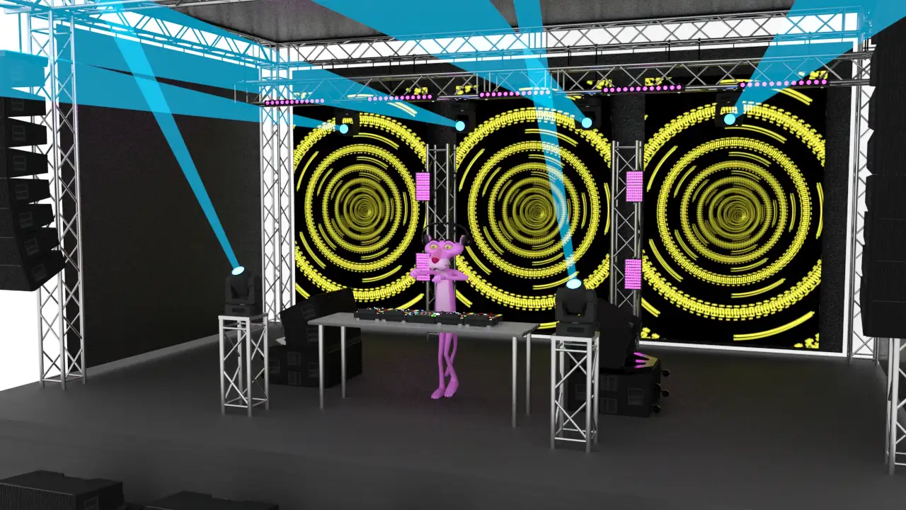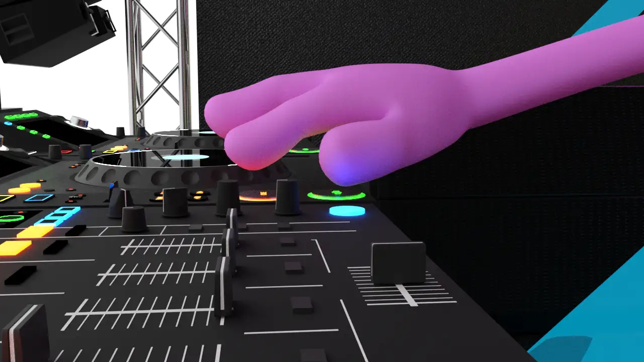 animiert wurde. Ebenfalls wurden die einzelnen Objekte, wie die Kopfhörer, CDJs, Traversen,